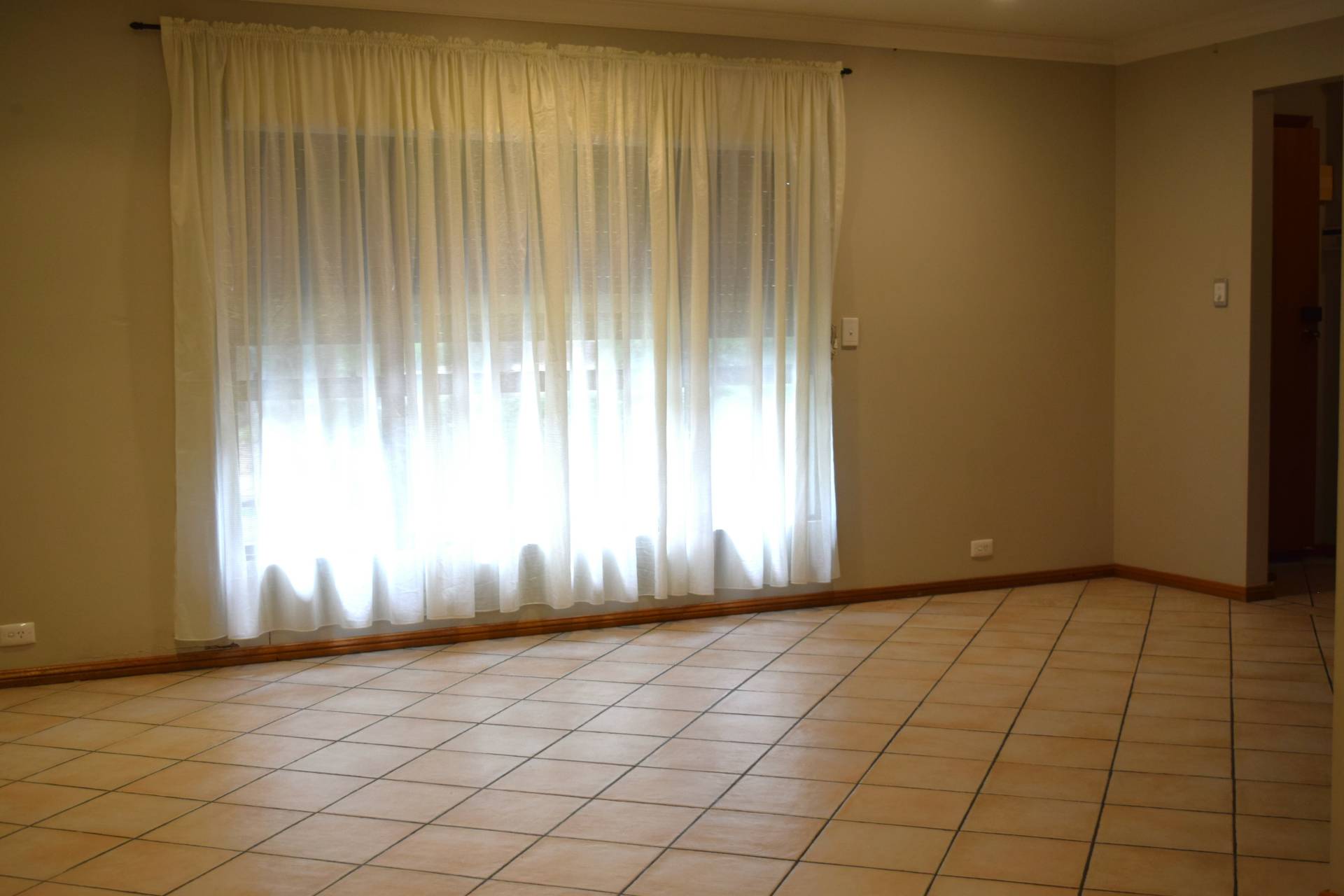 The L shaped tiled lounge room provides enough space for lounge/dining room activities with another meals area adjacent to the kitchen.