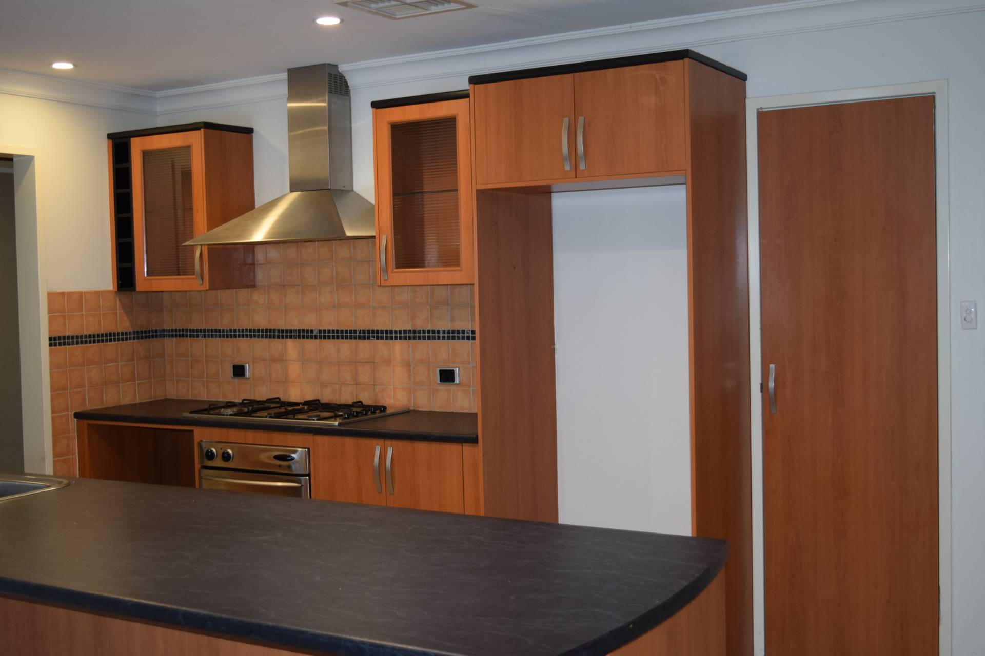 The kitchen offers ample cupboard/bench space with a big walk-in pantry, gas cooktop/oven, a dishwasher all overlooking the outback pergola area.