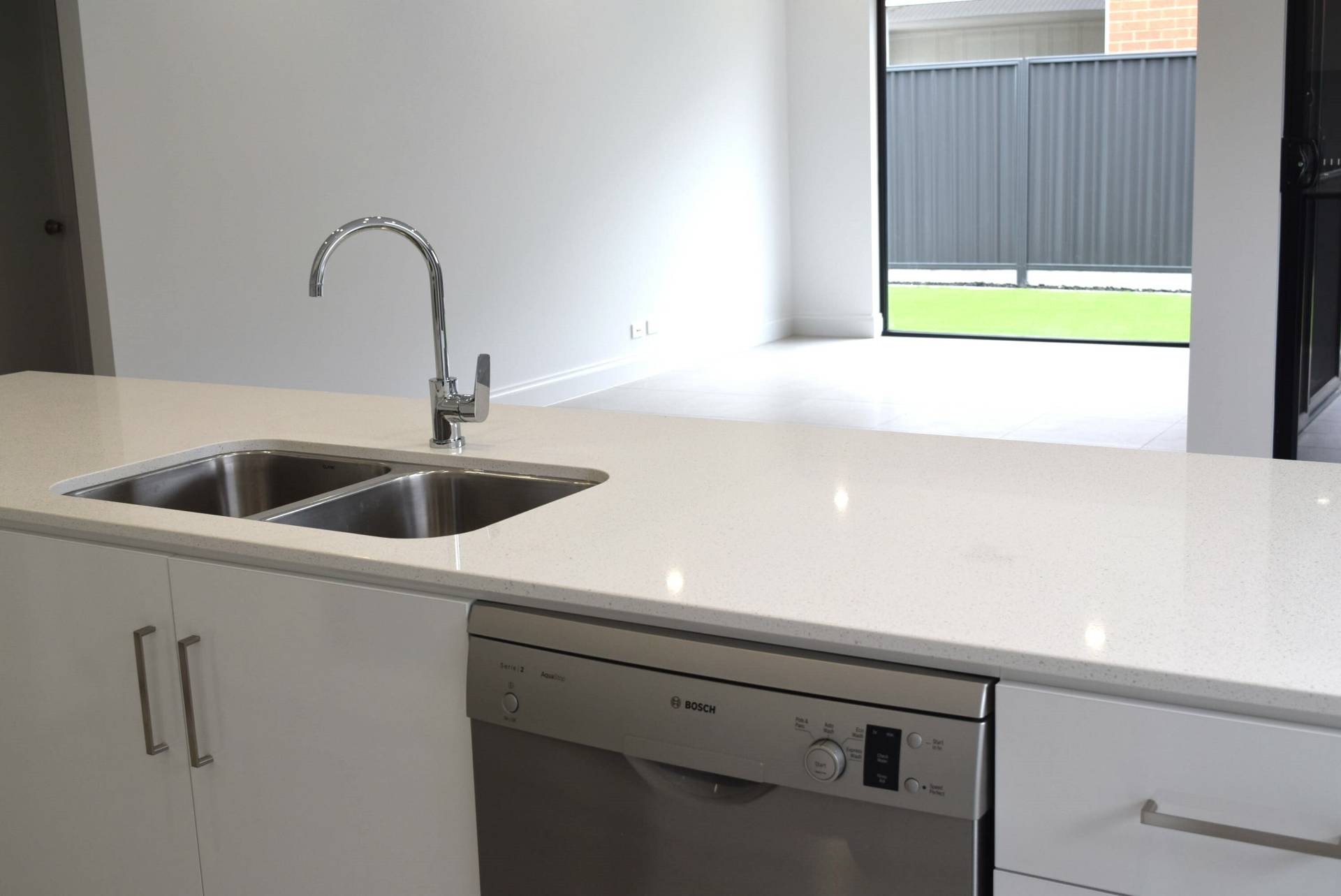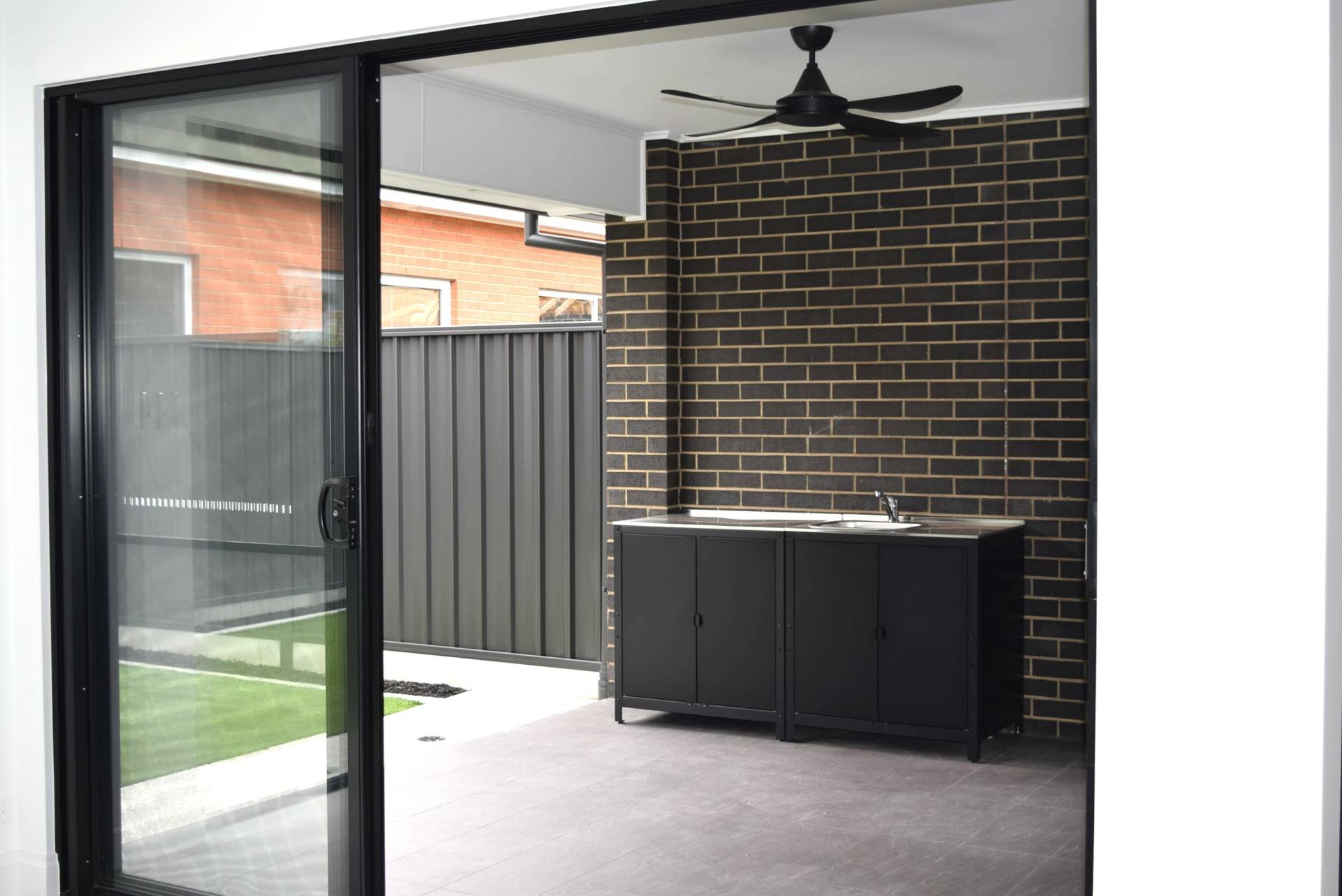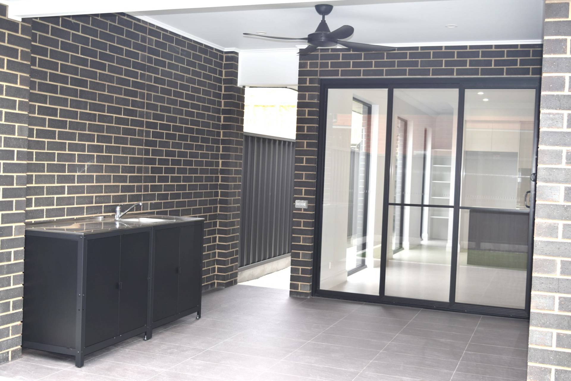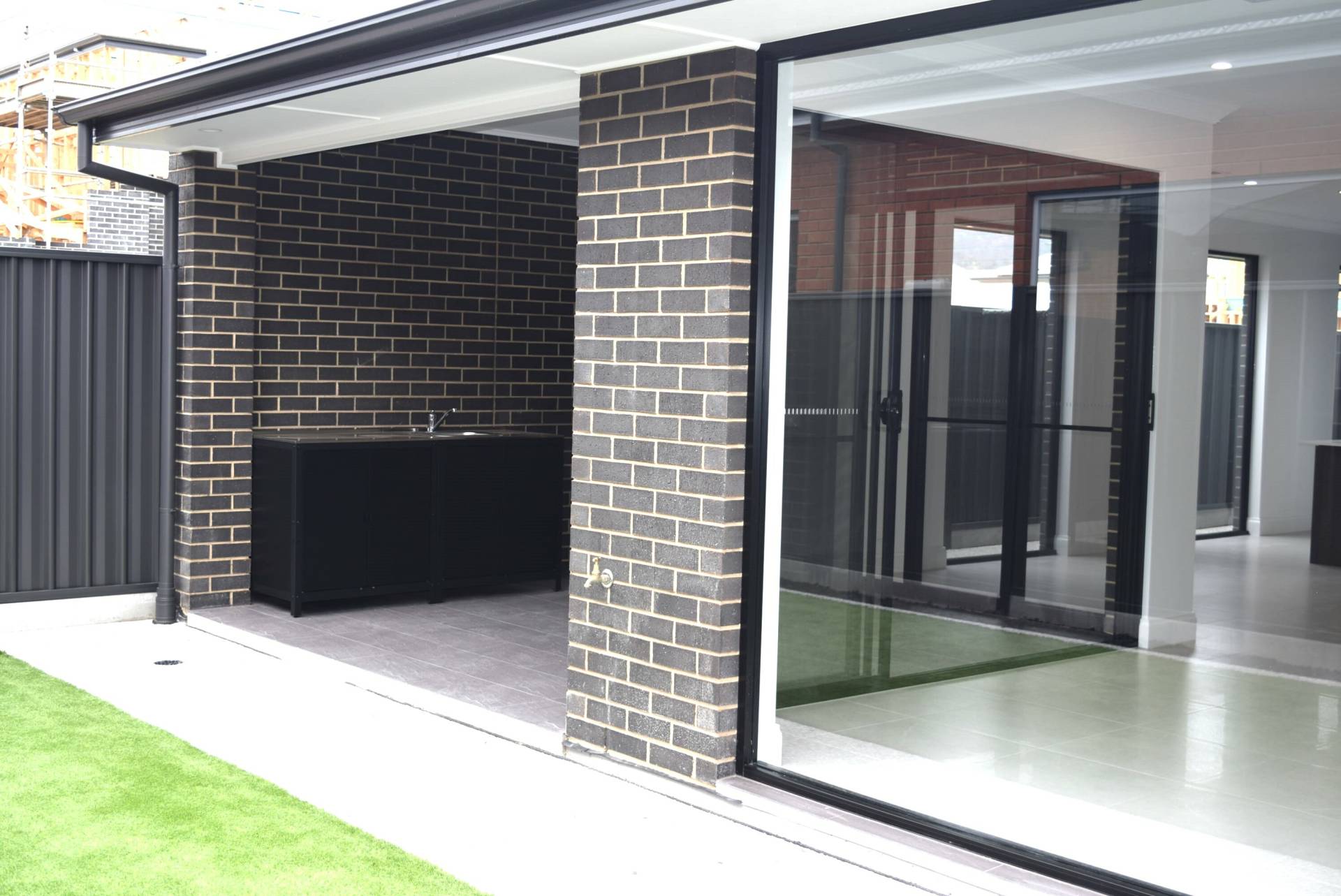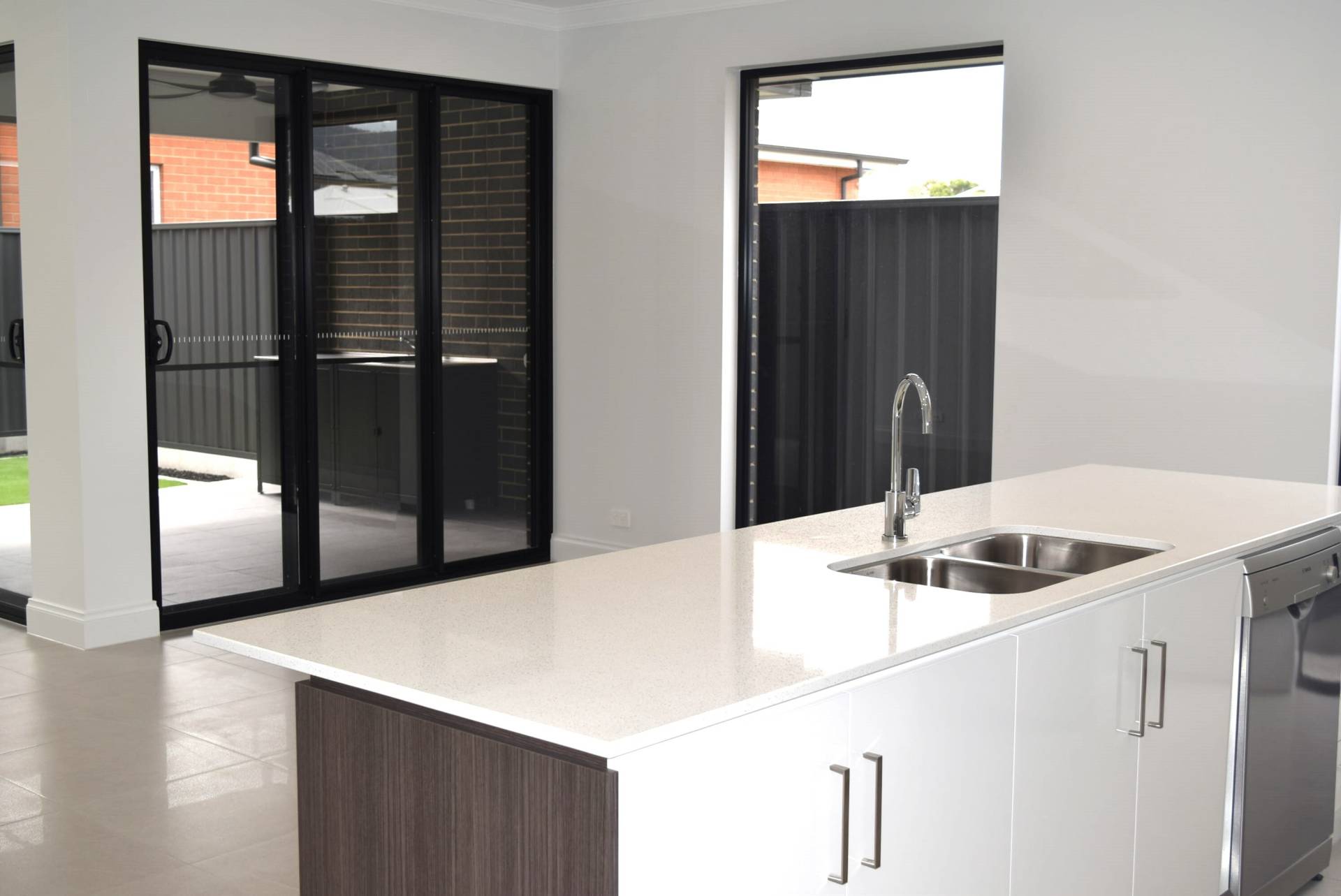 The open plan living area looks out to your under-cover alfresco area with double sliding doors that open up creating an even larger entertaining area plus a sink & in-built bench with wall gas fitting to allow a BBQ connection.